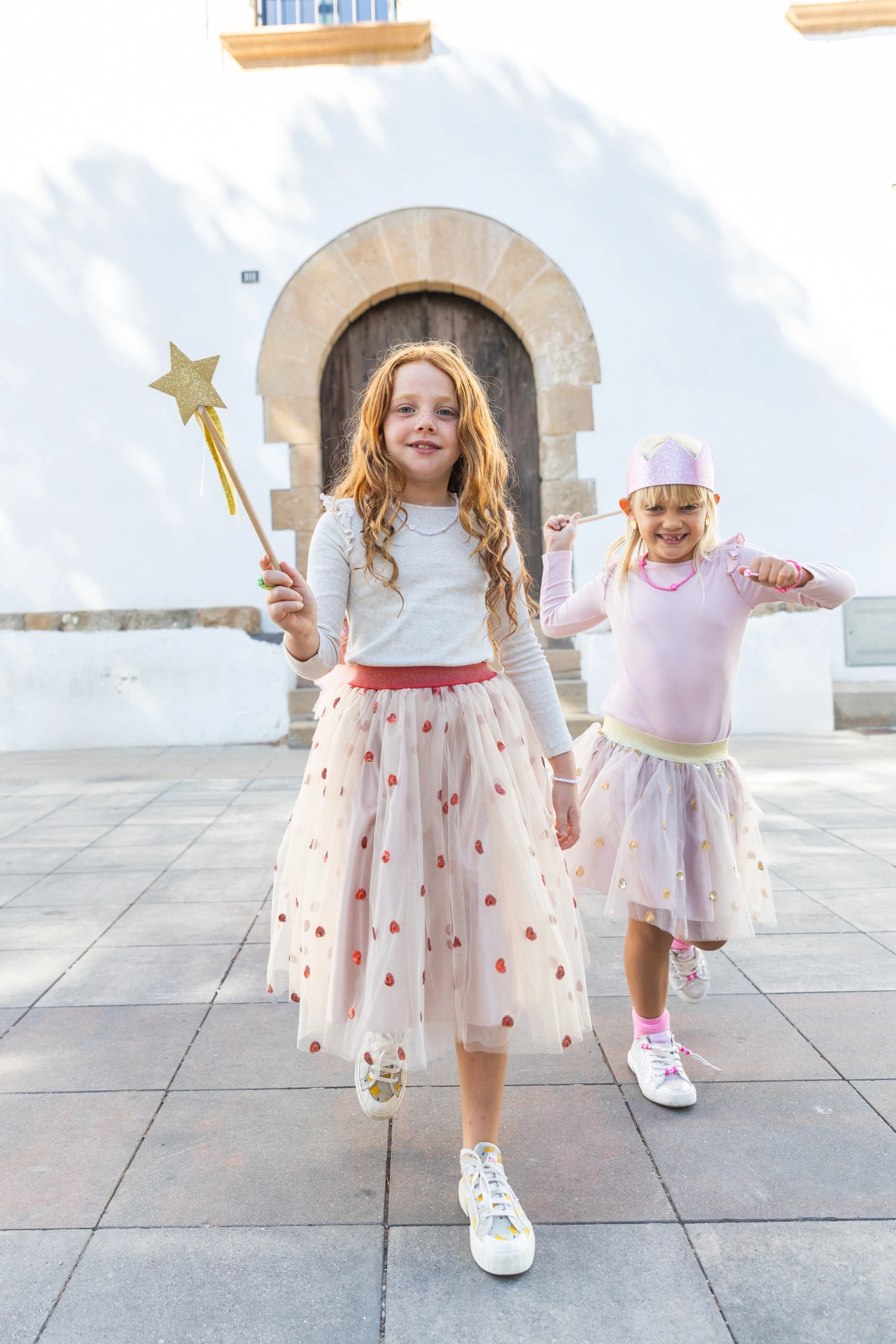 🎉 Jupon Célestine Long Beige à Sequins Cœurs Rouges | Ratatam Kids