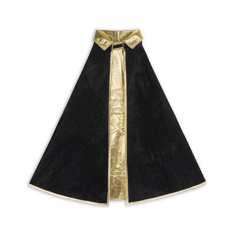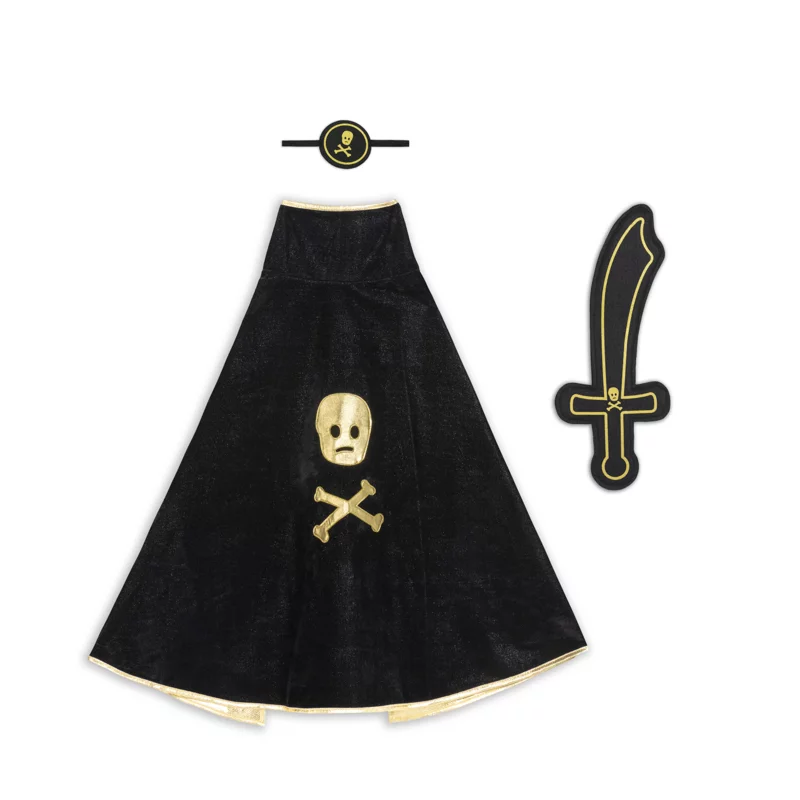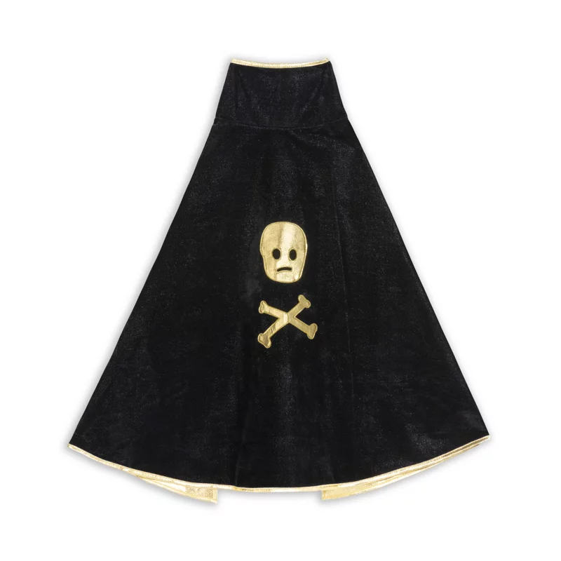 - Une cape noire en polyester, légère et facile à enfiler, qui se noue autour du cou grâce à un système de velcro, vous donnant une allure de pirate redoutable !