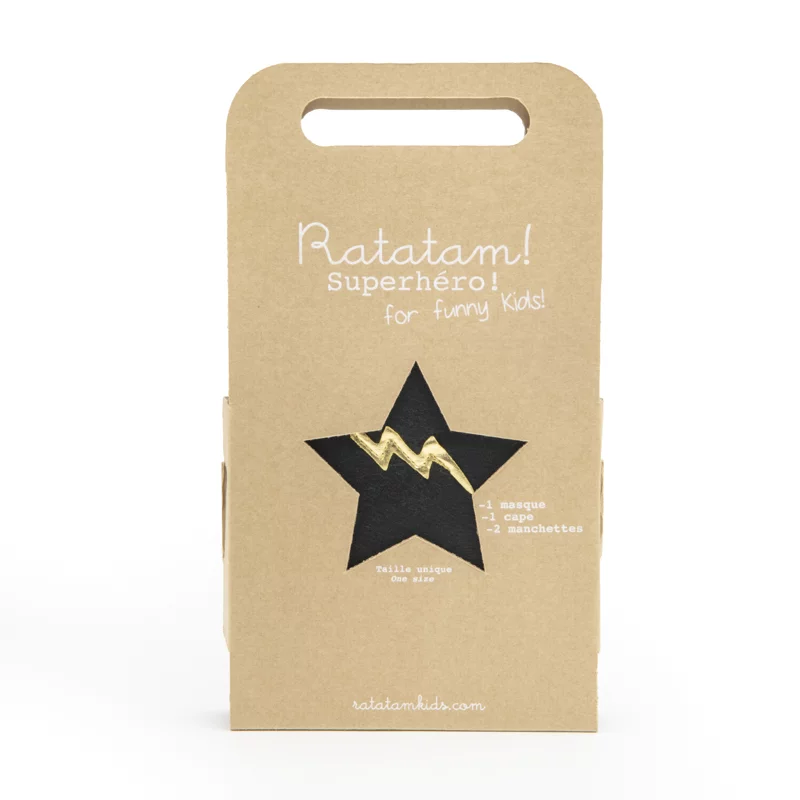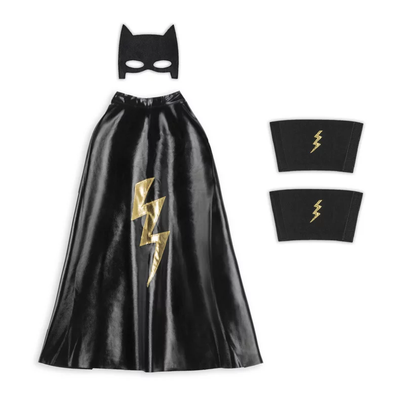 Avec ce kit, votre enfant se transformera en un héros intrépide prêt à affronter les plus grands défis. Tout commence avec notre cape noire, arborant un éclair doré qui scintille comme un vrai super-héros. Ajoutez à cela deux manchettes assorties, également ornées d’éclairs dorés, pour une allure encore plus épique ! Et pour compléter le look, notre masque chat, inspiré par le légendaire Batman, permettra à votre petit héros de se fondre dans l’ombre tout en gardant son identité super secrète.