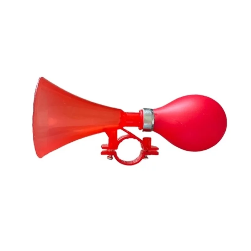 Klaxon pour vélo à fixer sur le guidon. C’est la vraie nouvelle technologie, on appuie et ça pouète! Parce qu’il faut se faire entendre en vélo sur la route tout de même. Le klaxon manuel, outil high tech est disponible en vert, jaune, rose, vert, bleu et rouge! Fabriqué en Chine.