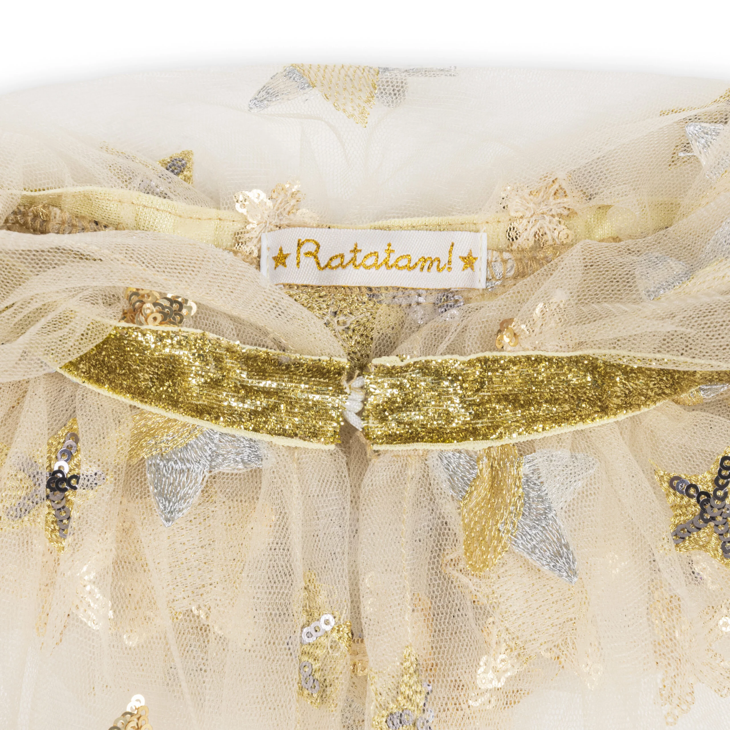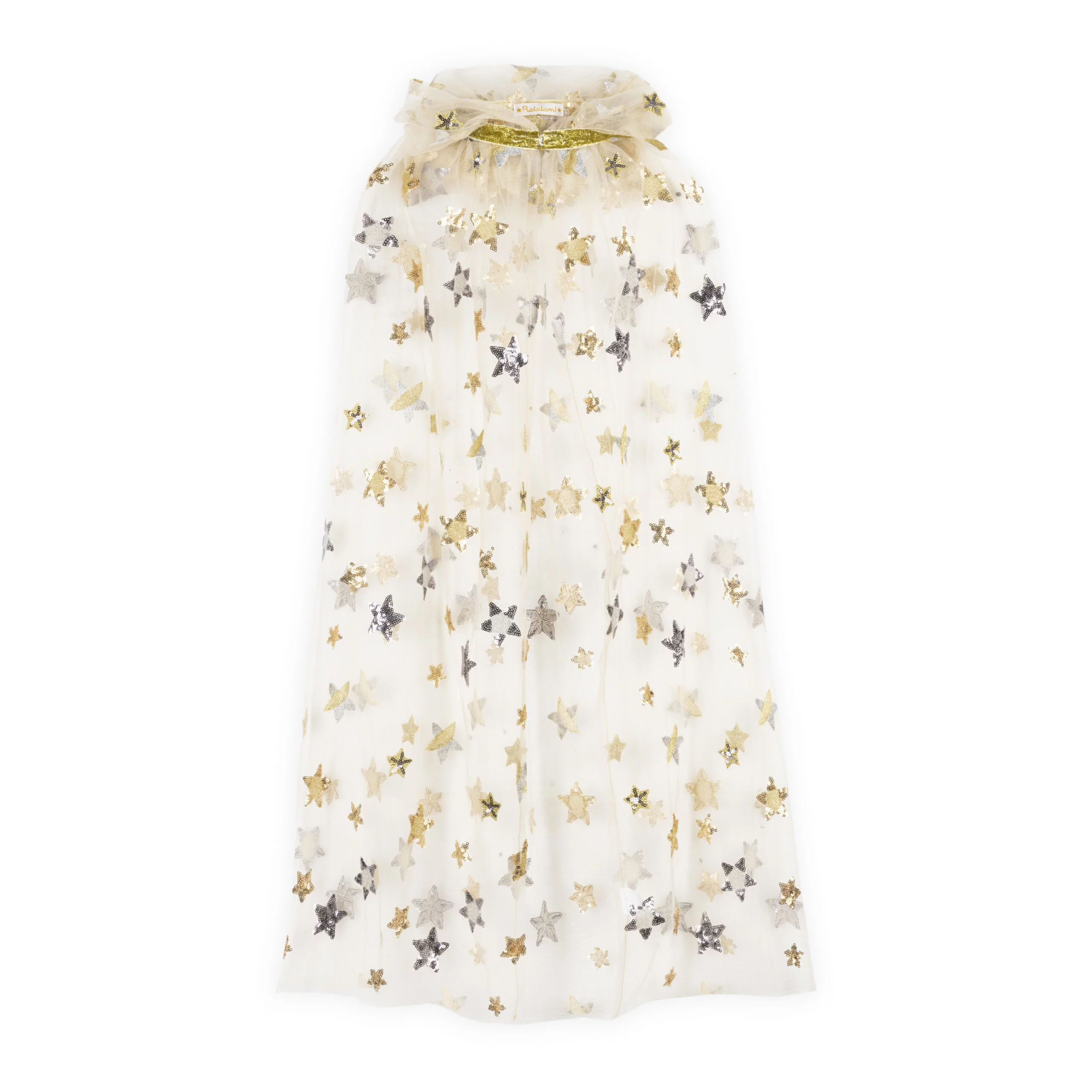 Cette cape de fée à capuche est un véritable trésor, fabriquée en tulle et brodée de fils argentés et de sequins dorés et argentés. Imaginez-vous danser et virevolter, étincelant de mille feux comme une véritable fée des contes de fées !