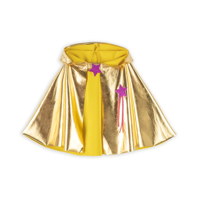 Une pièce colorée et super shiny pour se déguiser et s’amuser !  Cette cape courte en tissu métallisé doré, et parfaite pour les jeux de rôle, les fêtes costumées, ou simplement pour briller chaque jour ! Découvrez l’éclat de la magie dorée dès aujourd’hui ! Fermeture avec un velcro étoilé !