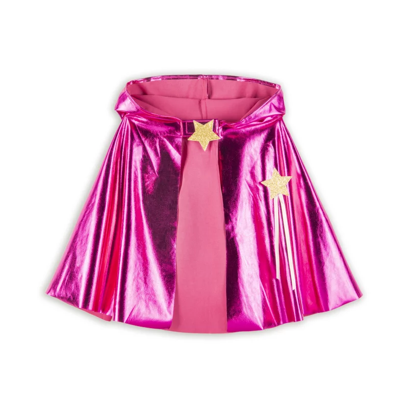 Un pièce colorée et super shiny pour se déguiser et s’amuser ! Cette cape courte en tissu métallisé rose, et parfaite pour les jeux de rôle, les fêtes costumées, ou simplement pour briller chaque jour de la semaine! Découvrez l’éclat de la magie dorée dès aujourd’hui ! Fermeture avec un velcro étoilé !