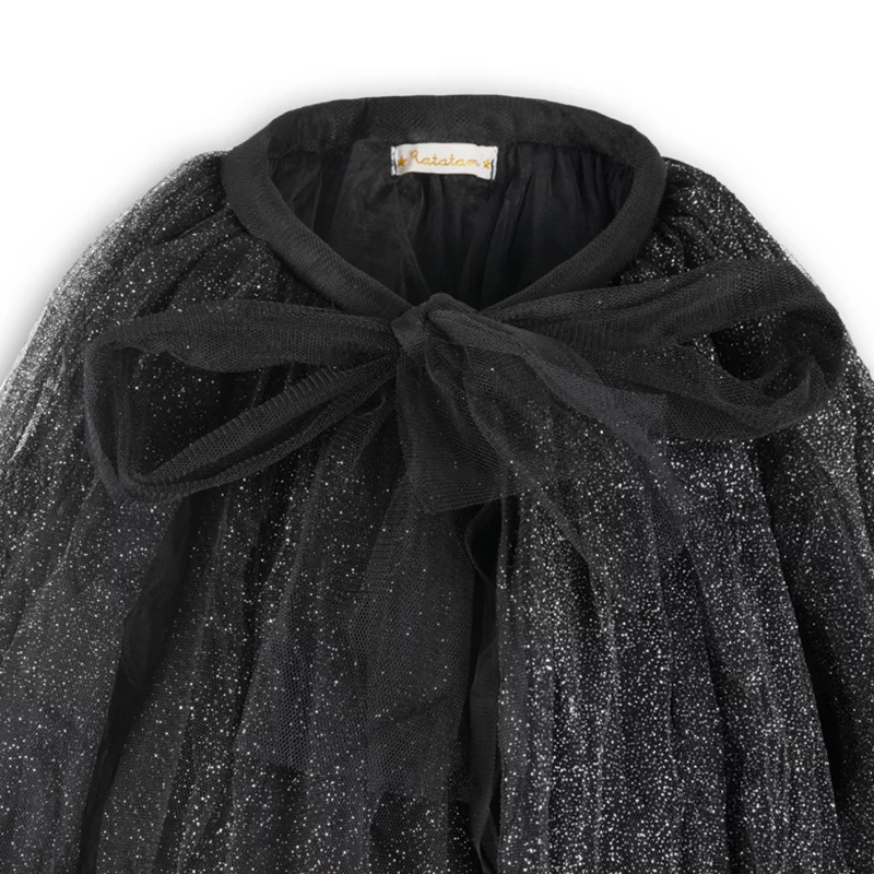 Plongez dans le monde magique de la sorcellerie avec notre incroyable cape qui fera de votre enfant une sorcière élégante et mystérieuse ! Tout commence avec notre cape-jupe en tulle noir, ornée de paillettes argentées qui scintillent telles des étoiles dans la nuit.