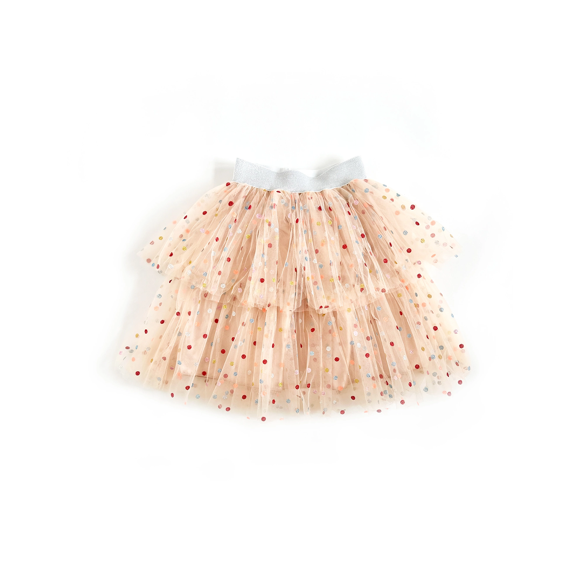 🌈 Jupe Colombine Courte Beige à Pois Multicolores – Taille unique 3-10 ans. Légère, confortable et colorée, elle accompagne toutes les aventures du quotidien !