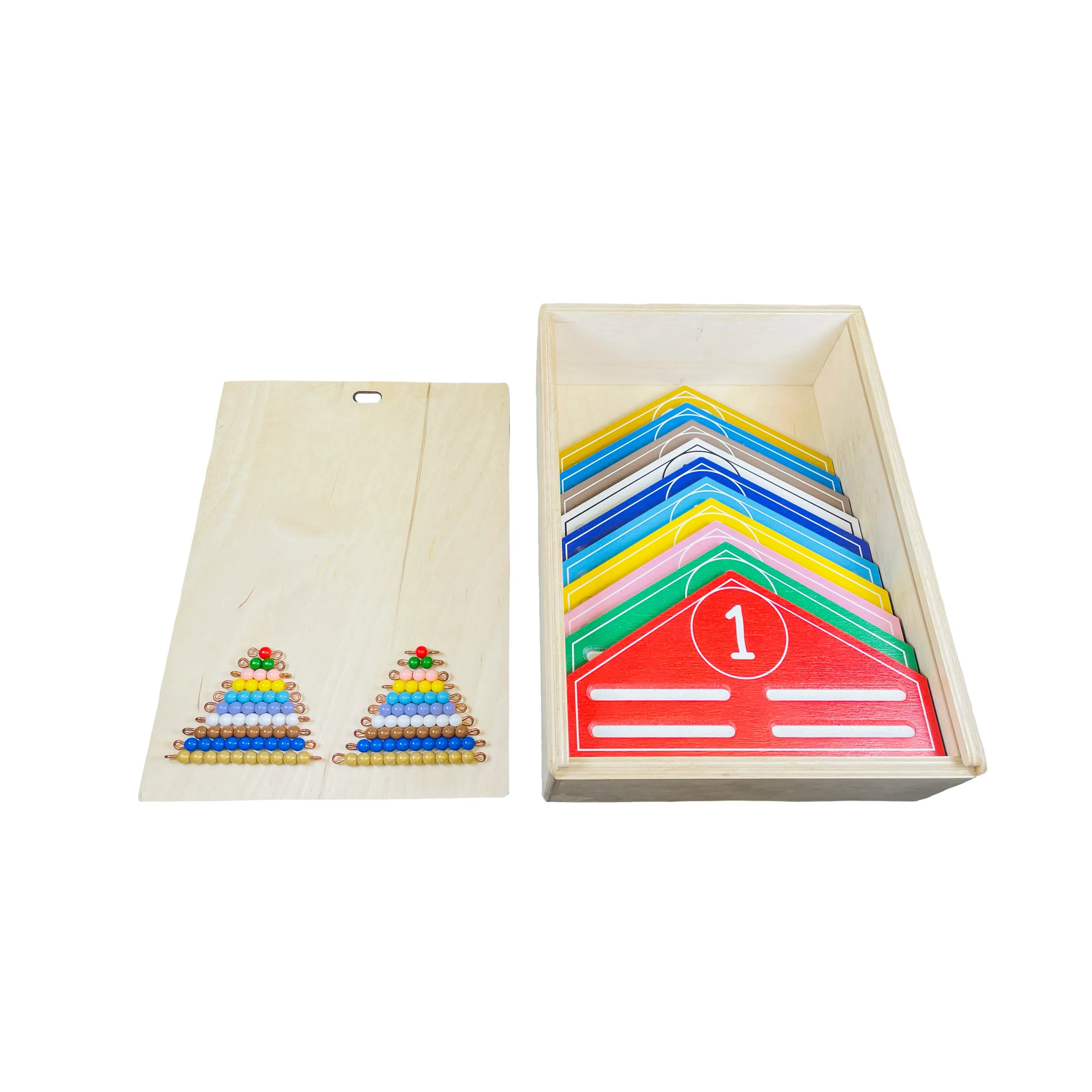 Nous avons développé cette maison des perles en bois avec un espace creusé pour les barrettes de perles afin de rendre cette activité emblématique plus manipulable.