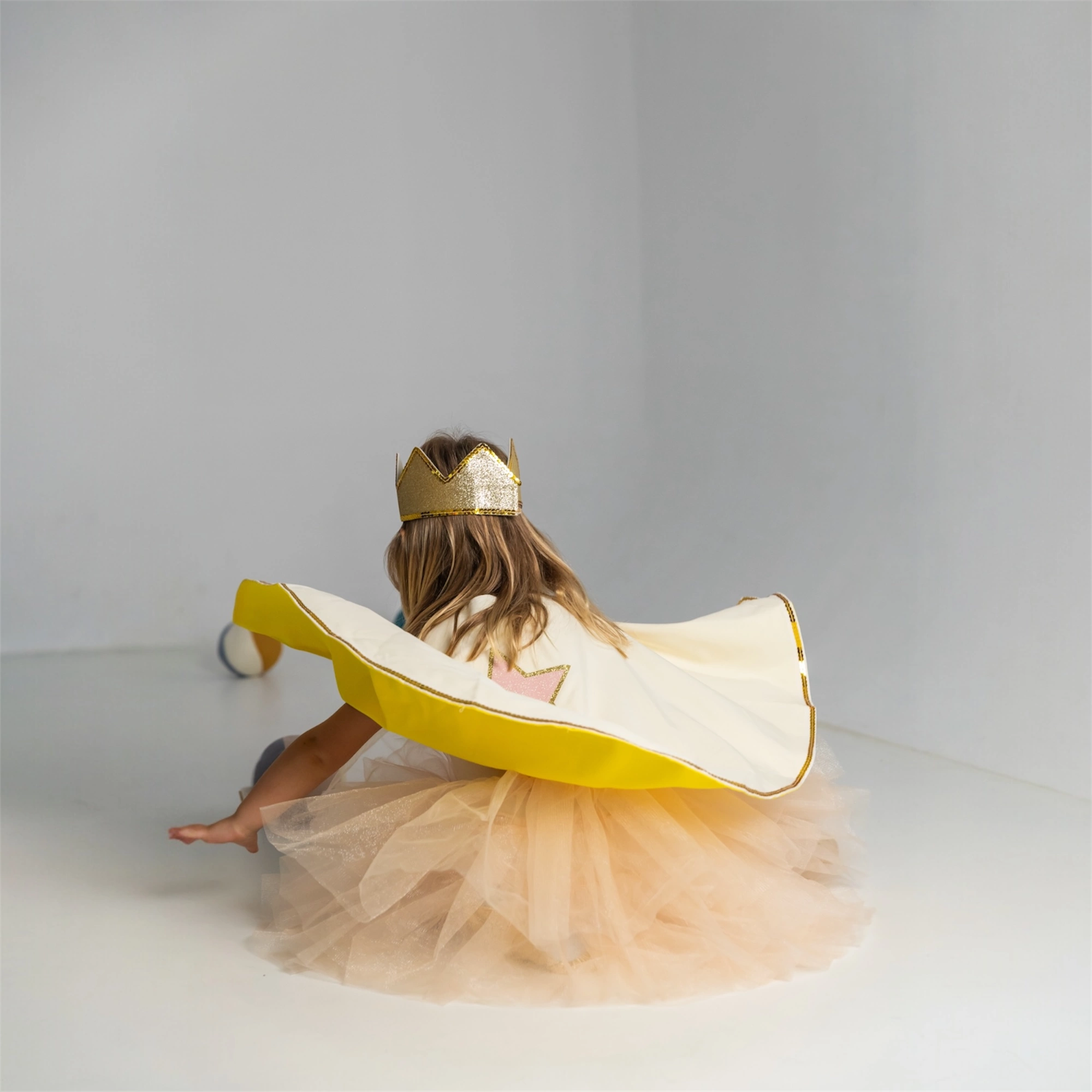 Transformez chaque fête en bal royal avec cet ensemble cape et couronne dorées ! Votre enfant sera prêt·e à briller comme une véritable étoile et à captiver tous les regards.