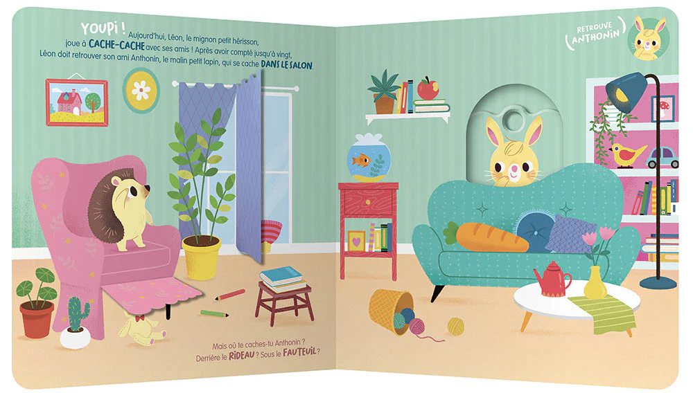 Léon et ses amis jouent à cache-cache dans la maison et lejardin… Aide Léon à retrouver ses copains en t’amusant avecles flaps et les mécanismes et découvre où se sont cachésAnthonin, Léonie, Sacha et Pénélope !