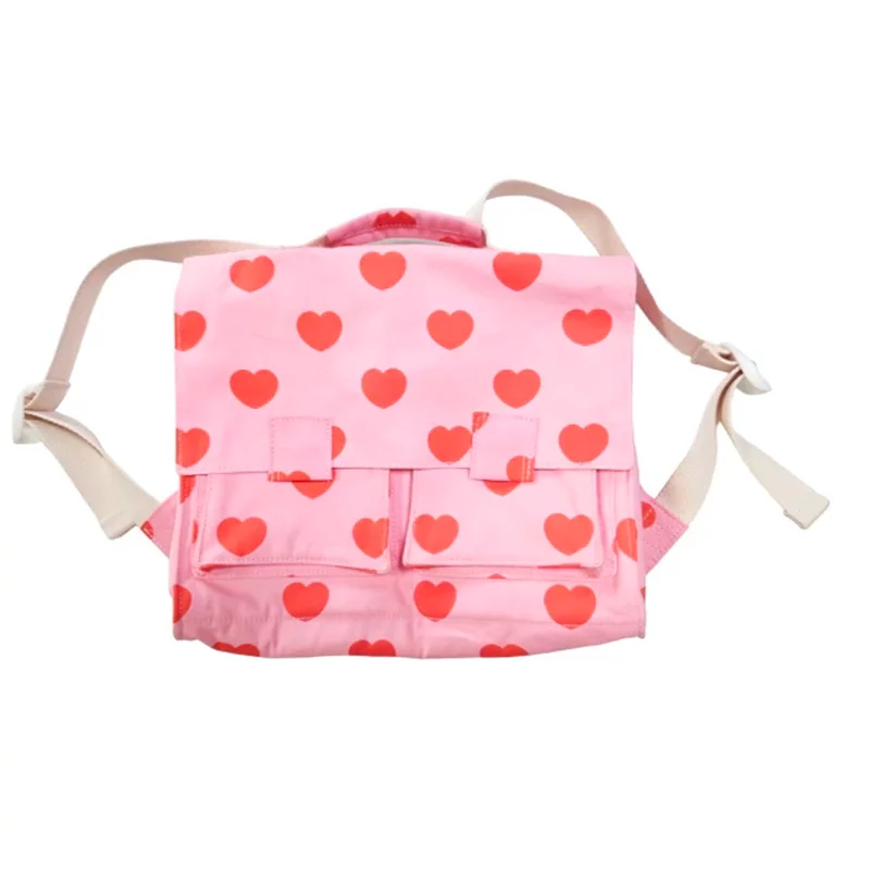 Transformez chaque journée d’école en une aventure pleine de tendresse avec notre cartable en coton tout doux. Ses jolis cœurs rouges sur un fond rose pétillant feront fondre le cœur de votre petit bout ! ❤️