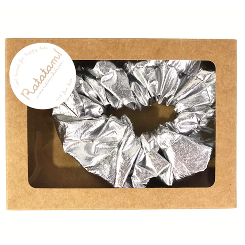 Tout  droit des années 90′, le chouchou revient en force! On se noue les cheveux, ou on l’utilise comme bijoux au poignet. Le chouchou Ratatam est métallisé, il est élastique bien sûr. Disponible dans 3 couleurs. Polyester.