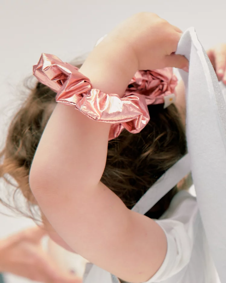 Ajoutez une touche d’élégance à l’attirail de votre petit avec notre Chouchou Satiné Élastique Argent !