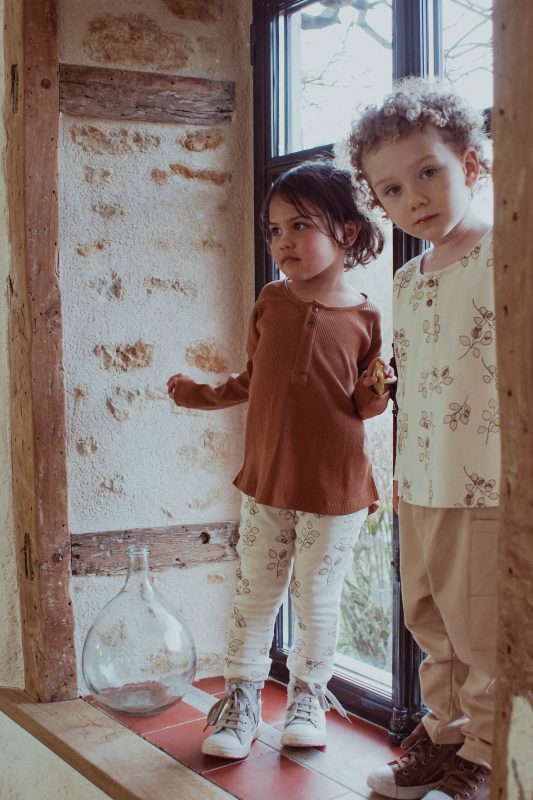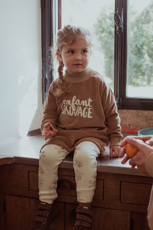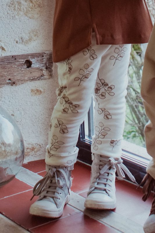 Le legging, c’est la pièce indispensable de la garde-robe bébé et enfant! Un pantalon doux et très confortable, unisexe et solide. Il laisse les enfants libres de leurs mouvements, il ne sert pas le ventre et est idéal pour les bébés qui apprennent à crapahuter! On le met avec tout: t-shirt, pull, gilet…, sous une robe etc. Le petit +: il est coupé long, de façon à durer longtemps! Il suffit de faire un revers avec les bracelets de chevilles, et en plus c’est joli 🙂