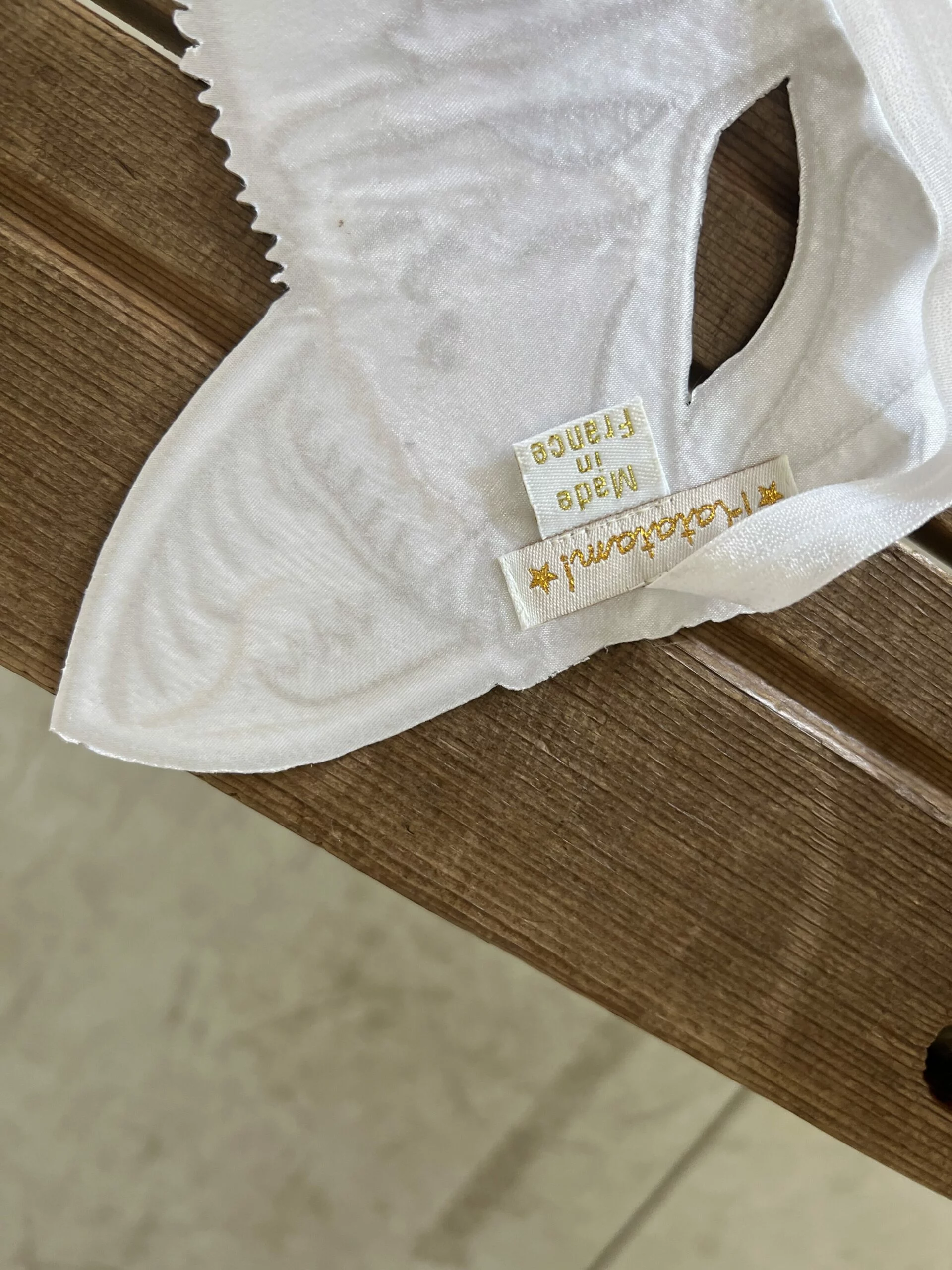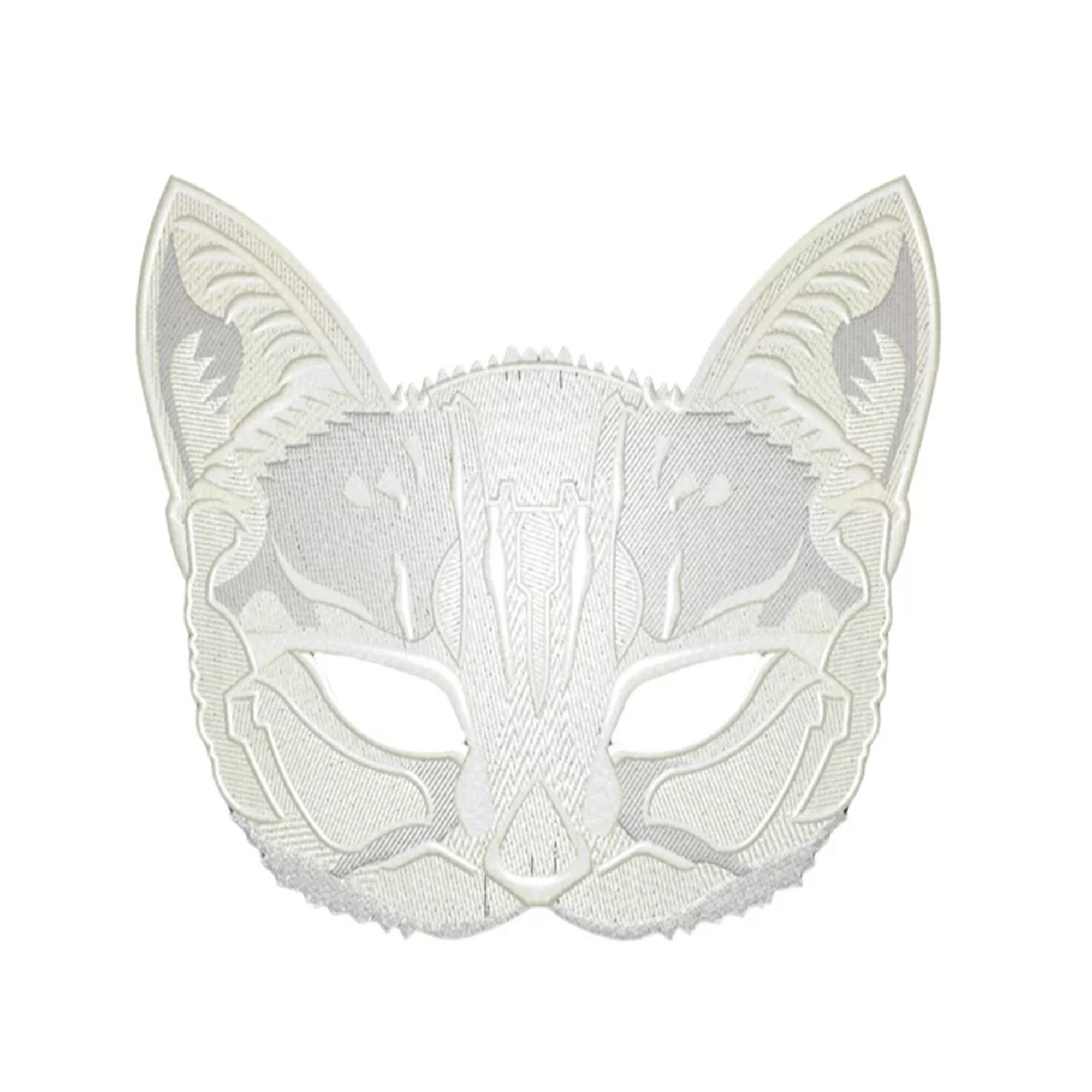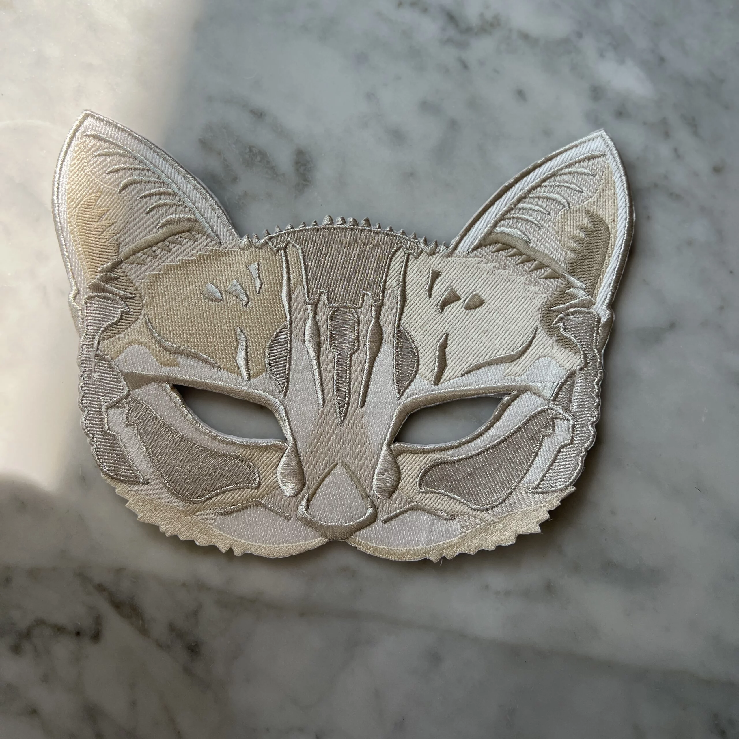 Avec ses motifs de broderie, on le croirait tout juste sorti d’un bal costumé vénitien. Sa couleur gris perle lui donne de la sobriété et du mystère. C’est l’accessoire idéal pour tous les enfants qui aiment faire des spectacles vivants, raconter des histoires fantastiques ou jouer. À chat, évidemment !