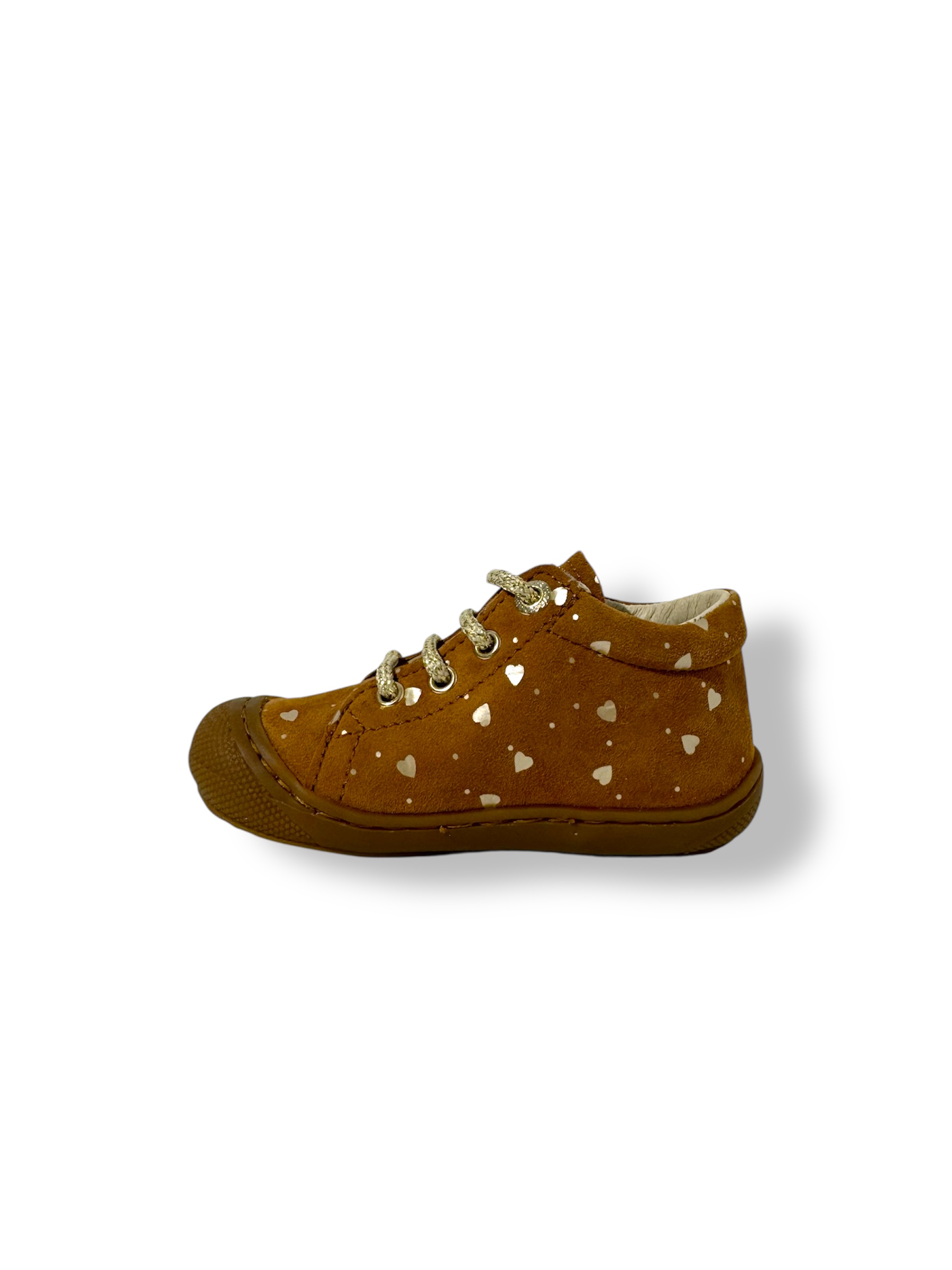 Pour parcourir le bitume avec style, il y a cette basket montante dévoilée par Naturino. Avec sa tige en cuir marron, elle confronte l’héritage de la chaussure de sport à la mode actuelle. Montée sur une semelle en cuir, elle renferme une doublure fabriquée en cuir. A tester sans plus tarder !