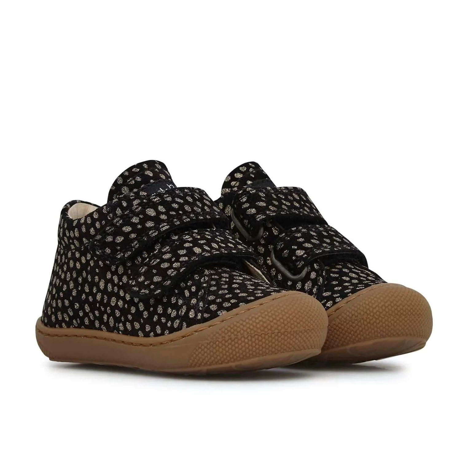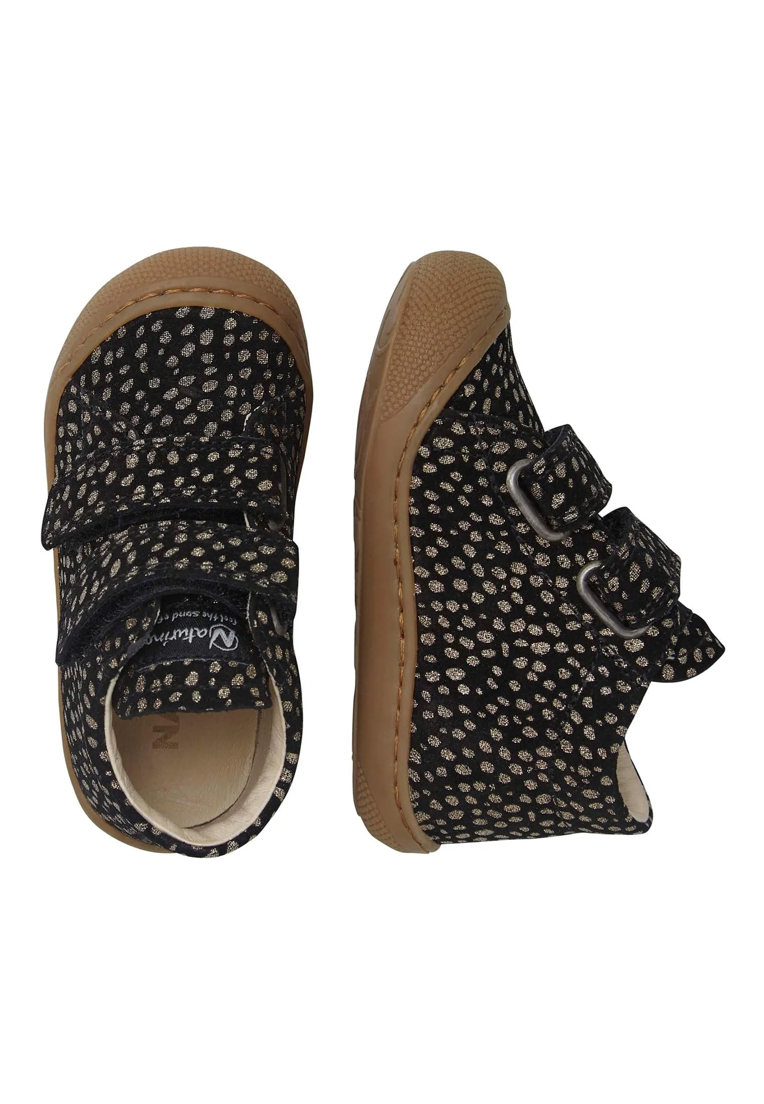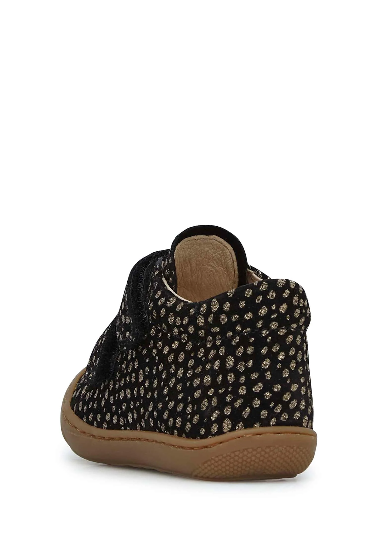 Protection et glamour, au maximum du style : nouvelle version des chaussures premiers pas, avec tige en daim léopard souple. La construction spéciale avec talon renforcé, bout arrondi et rembourrage à la cheville offre confort et soutien au mouvement. Semelle en caoutchouc antidérapant avec embout renforcé, parfait sur toutes les surfaces et également lors des jeux par terre.