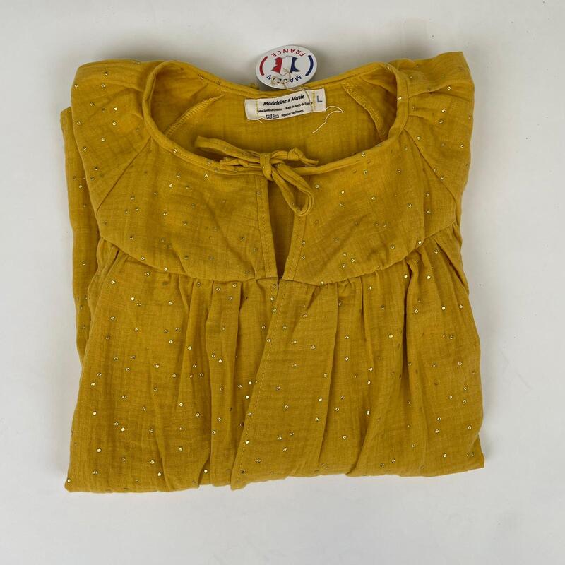 • Double gaze de pur coton certifié Oekotex, à paillettes dorées