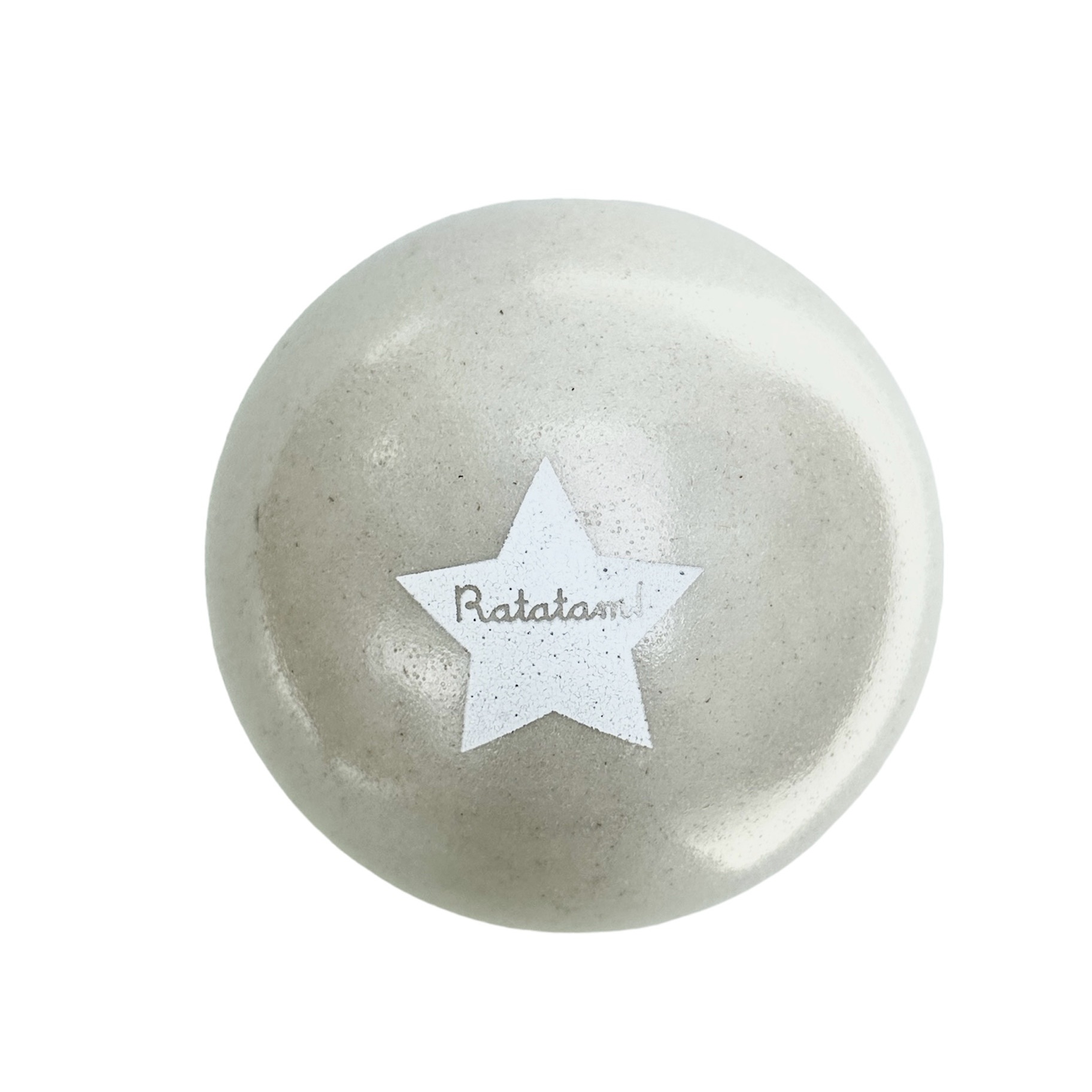 Le ballon vintage est disponible en 4 couleurs : blanc, jaune, gris et rose. Chacun d’entre eux est orné d’une étoile portant le logo de notre marque “Ratatam!” pour une touche d’originalité.