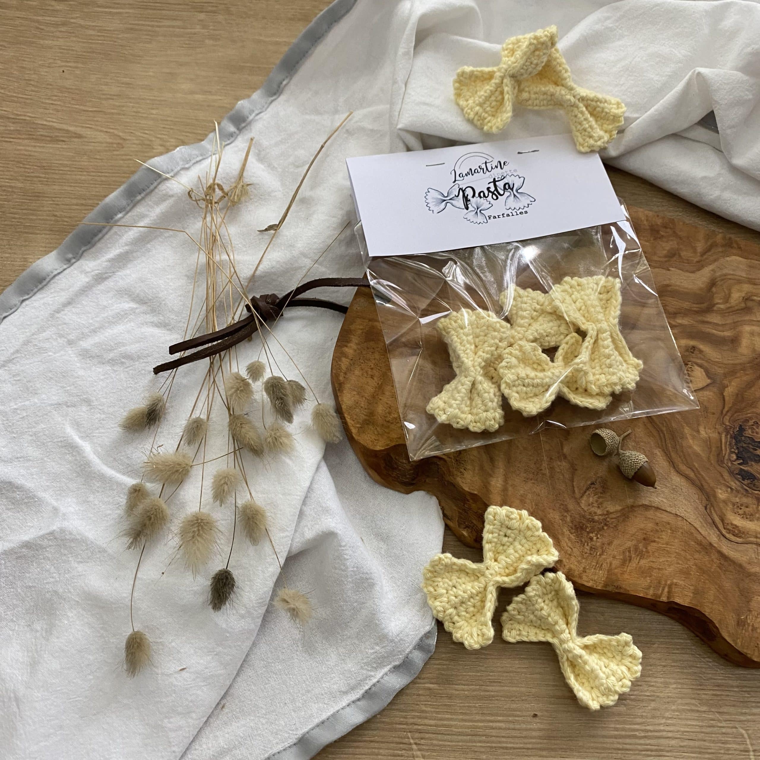 Ces petites pâtes sont entièrement crochetées à la main par Justine à Grenoble en fil 100% coton.