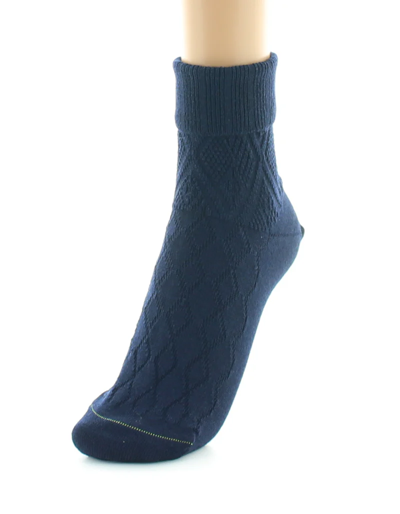 PERRIN – Chaussettes femme à maille fantaisie – Laine Bio – Marine