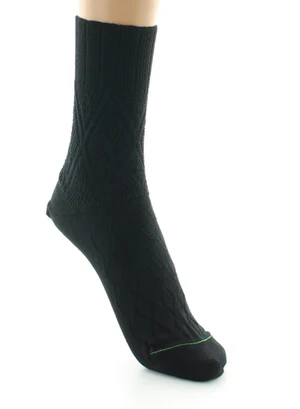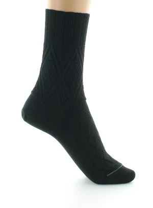 PERRIN – Chaussettes femme à maille fantaisie – Laine Bio – Noir