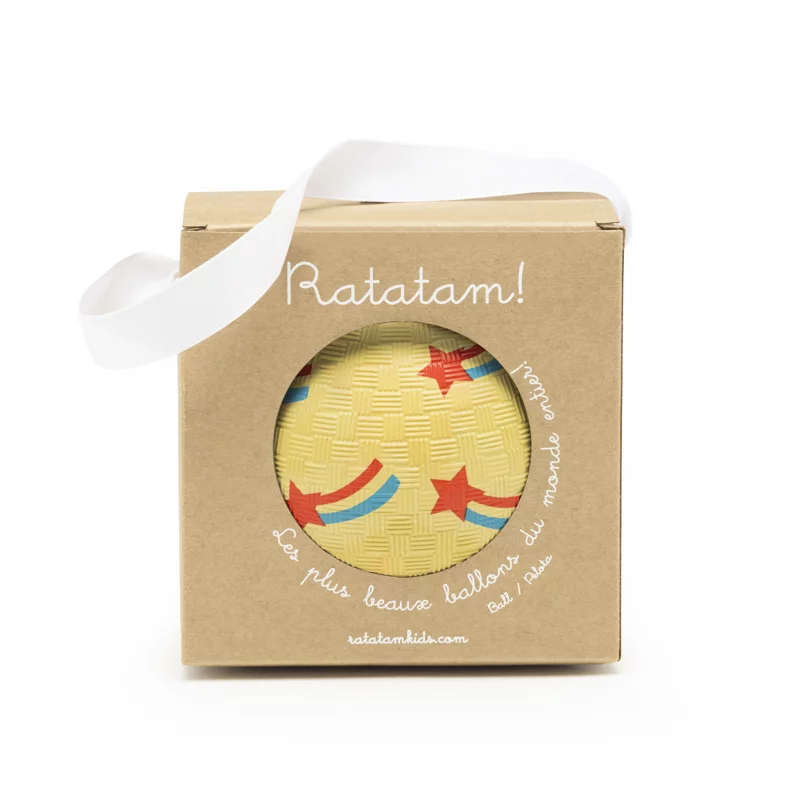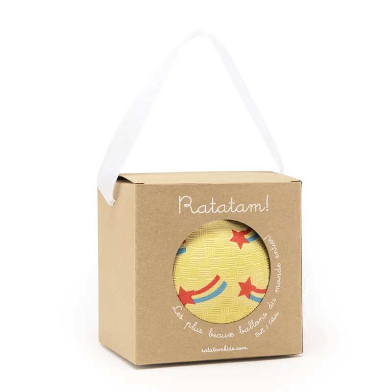 Imagine un petit ballon plein de magie, avec des étoiles filantes multicolores qui dansent joyeusement sur un fond jaune ensoleillé ! Eh bien, devine quoi ? C’est notre petit ballon étoilé Ratatam Kids ! Avec lui, chaque journée devient une aventure éclatante !