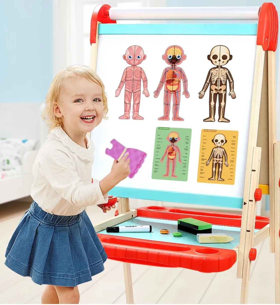 Avec ce jeu éducatif magnétique coloré en forme de valise, votre enfant découvrira donc plusieurs les différentes parties du corps humain.