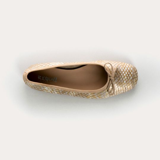 Optez pour un style sophistiqué avec les ballerines Harmony Snake en cuir nacré gold de Reqins.