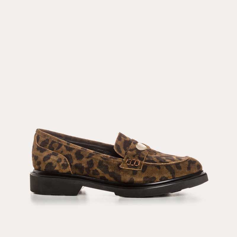 Les mocassins Jack revisitent l’esprit collège avec une fantaisie assumée. En cuir suédé imprimé serval vison, ils s’ornent d’un cœur doré sur la languette pour une allure espiègle et élégante. Leur talon de 2,5 cm allie confort et style. À porter avec un jean retroussé, une jupe plissée ou un pantalon droit pour un look preppy revisité et plein de personnalité. Conseils d’entretien :Dépoussiérer à l’aide d’un chiffon doux ou brosser délicatement dans le sens du grain avec une brosse souple. En cas de taches superficielles, utiliser une brosse en crêpe et frotter doucement la partie tachée. La paire peut être…