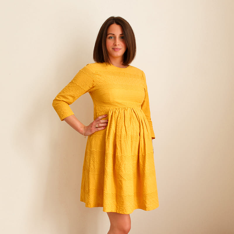 Soyez le premier à laisser votre avis sur “Robe de grossesse – broderie coton moutarde – dernière pièce XL”