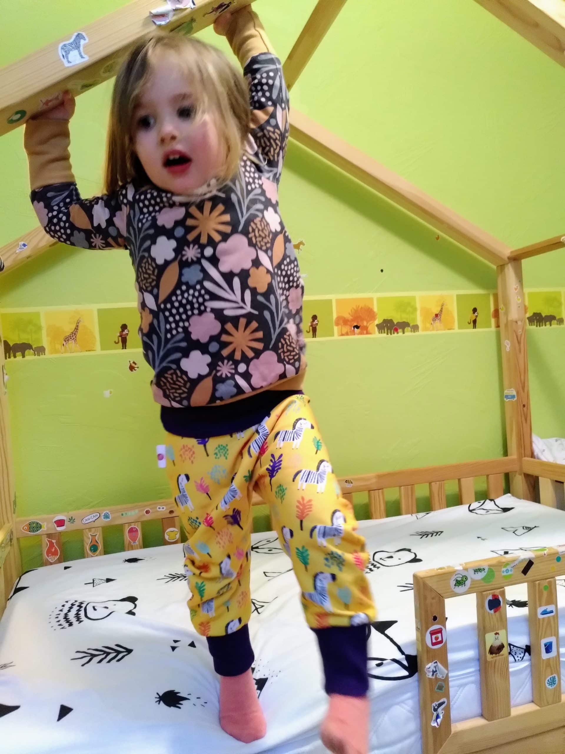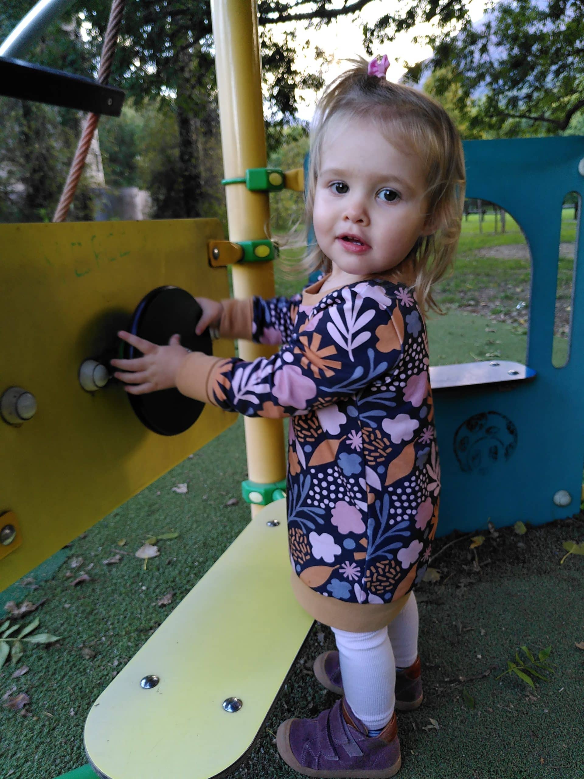 - Alicia a 3 ans et porte du 1-3 ans en sweat (combiné avec le sarouel hiver zèbre).
