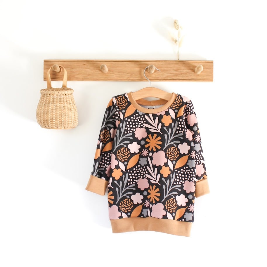 Une robe sweat cousue en France à partir d’un tissu certifié Bio qui grandit avec votre enfant et couvre 3 tailles habituelles. Vous choisiriez donc une taille 1 à 3 ans, 3 à 6 ans, ou 6 à 9 ans !