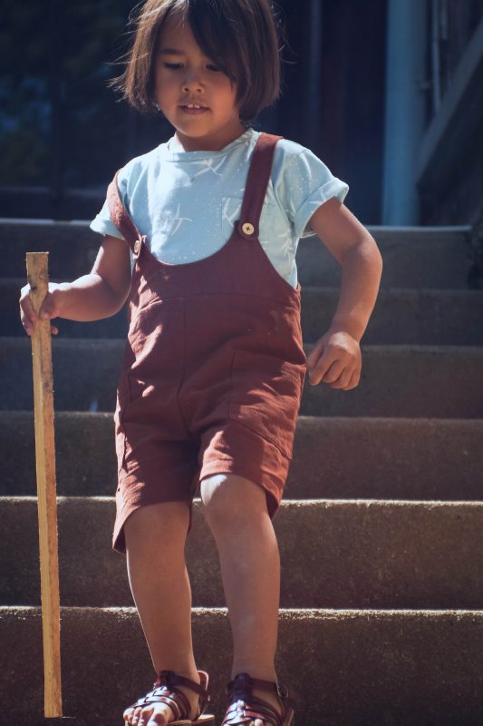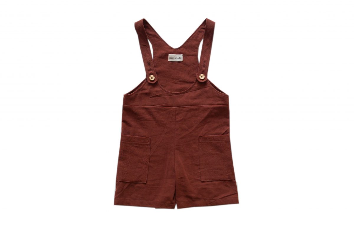 La salopette chouchou unisexe, à porter avec un débardeur, un teesh ou même… rien! On retrousse le bas des jambes pour raccourcir le short si besoin, et la vie est belle… Le petit + : ses grandes poches plaquées