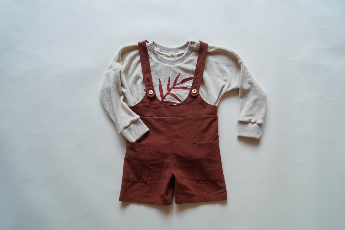 Salopette short, larges bretelles avec 2 niveaux de boutonnage