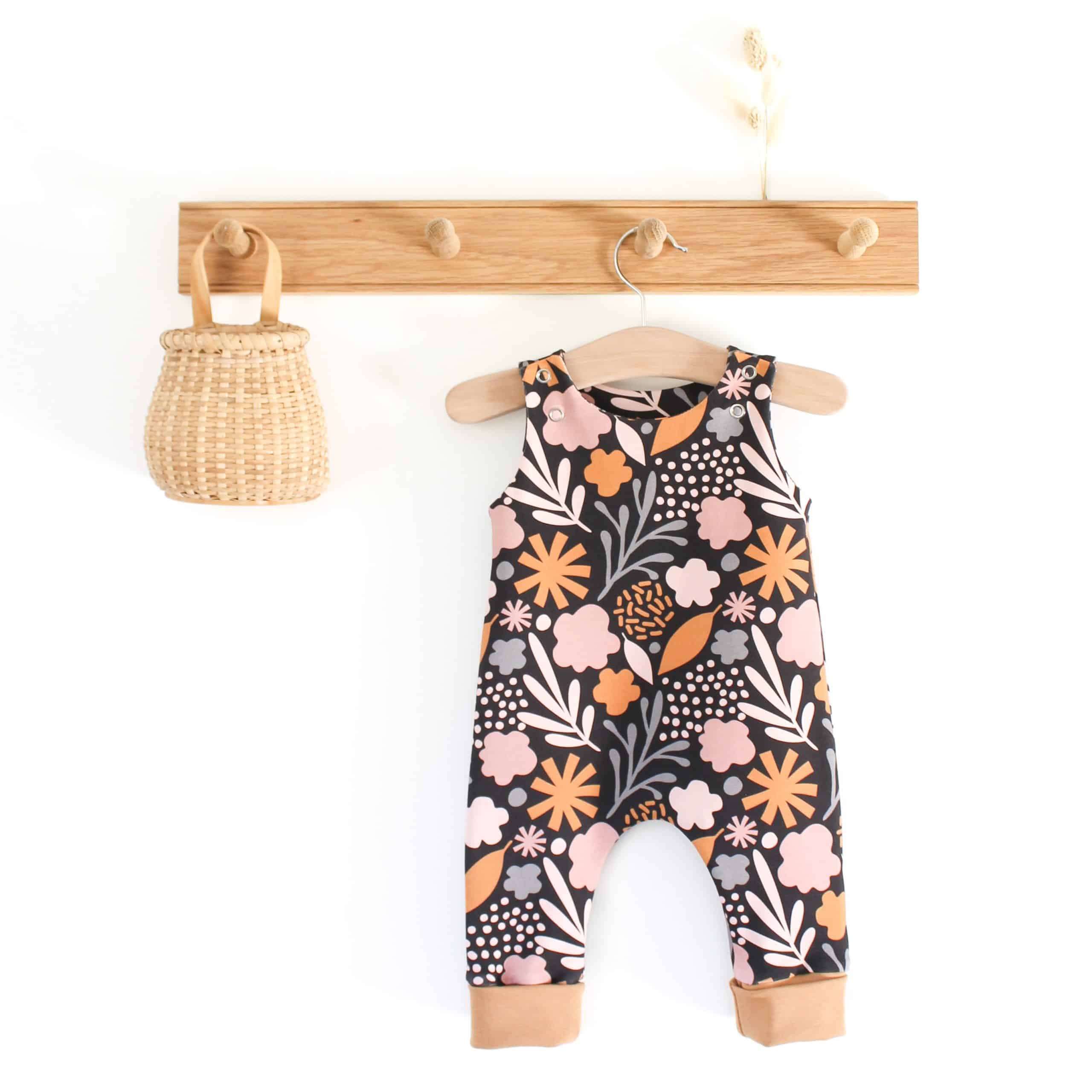 Salopette évolutive en tissu bio, couvre 3 tailles classiques, conçue pour une motricité libre. Cousue en France (Isère).