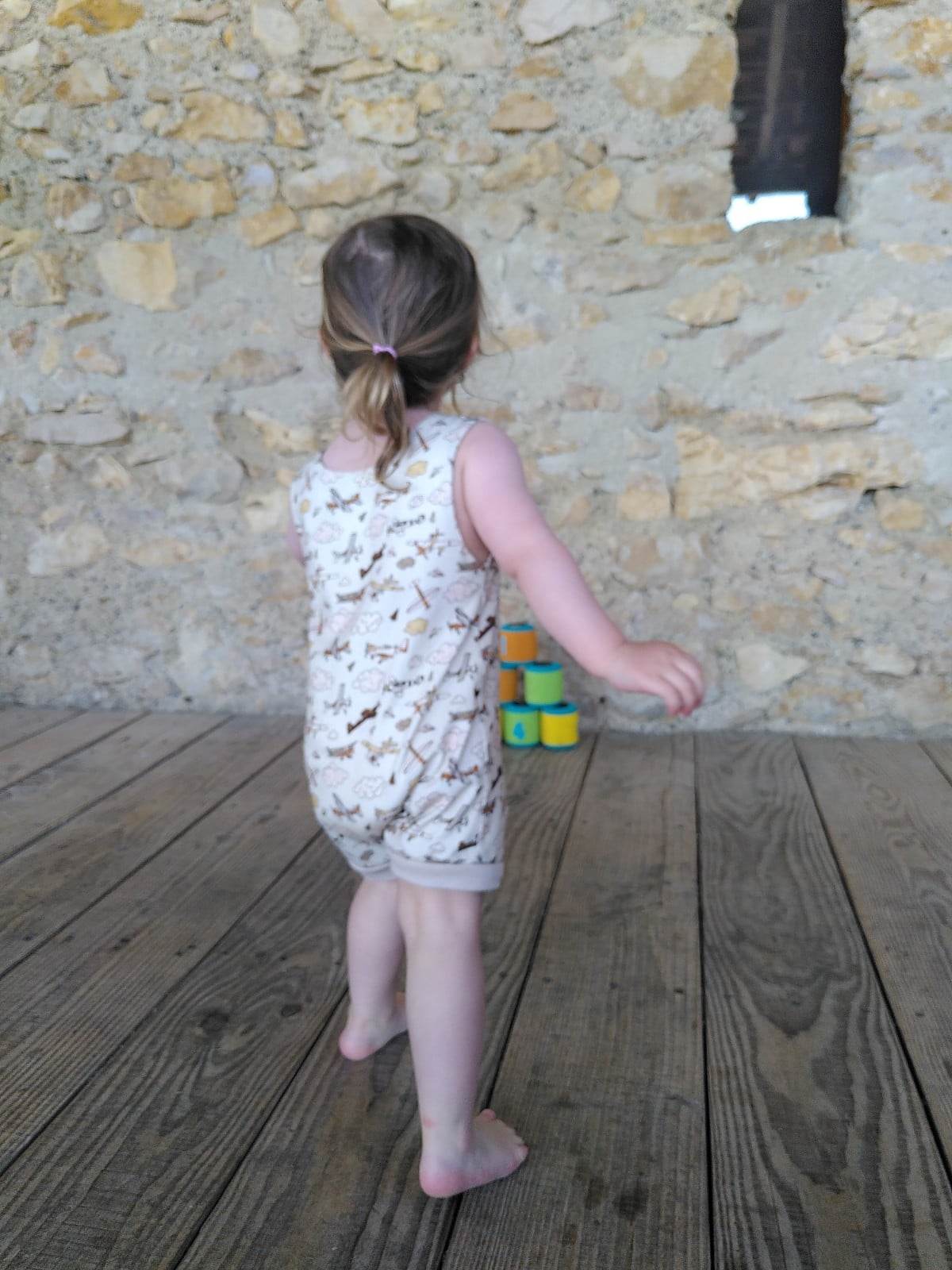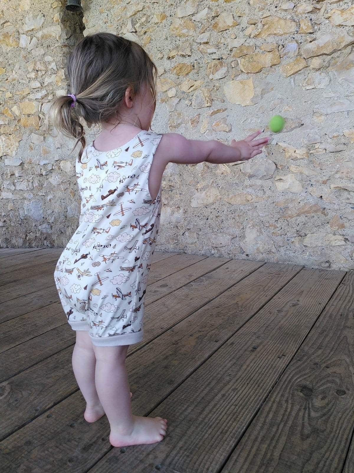 Harmonie a sélectionné un tissu Okeo-tex, avant de coudre pour vous cette salopette dans son mini-atelier à Seyssins, près de Grenoble.