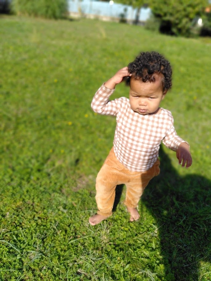 Un sarouel tout chaud tout doux. Nous l’avons pensé bien large pour être à l’aise pour des premiers pas sereins.