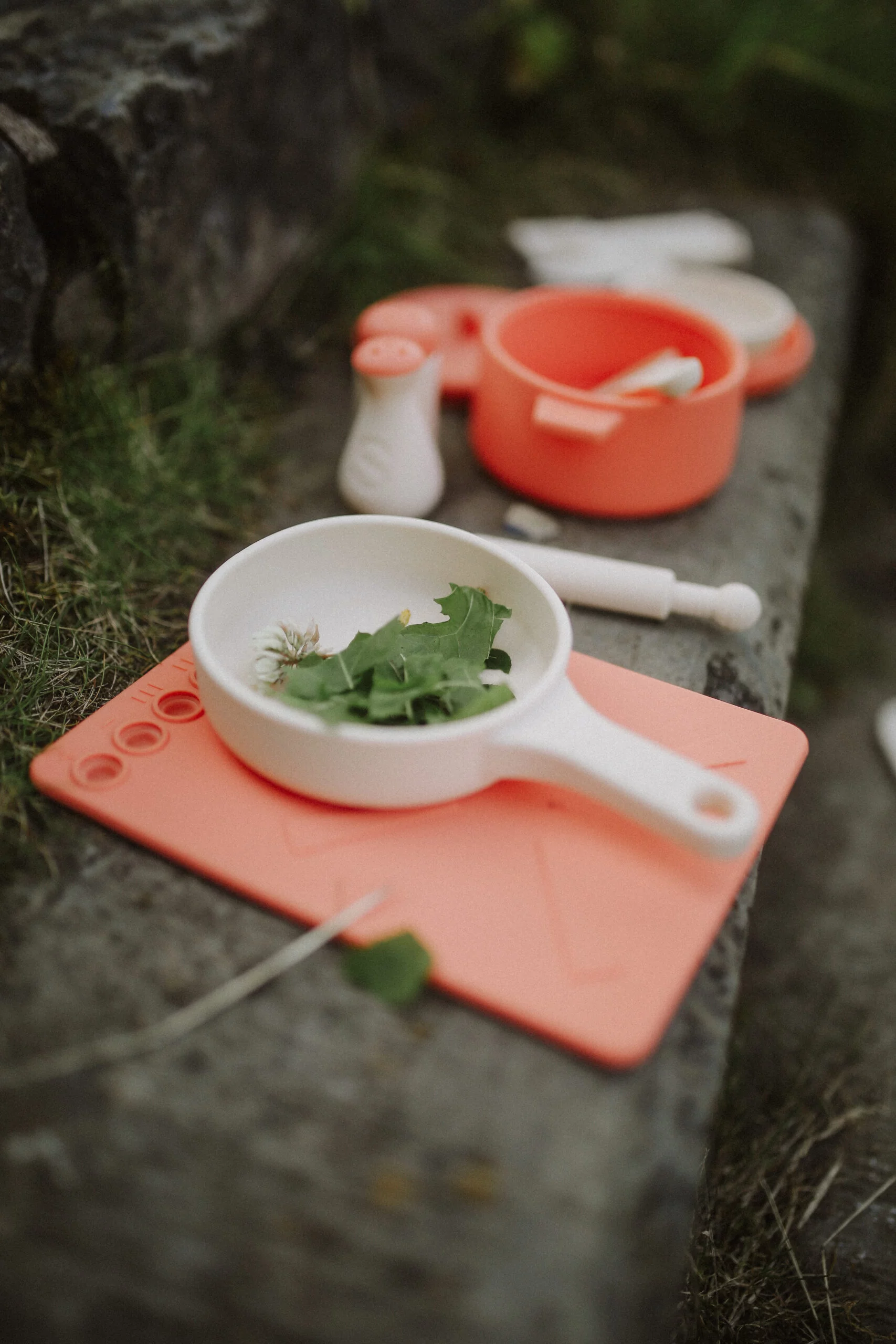 Son design corail et amusant apporte du soleil dans la cuisine ! Le set est complet pour tout type de recettes imaginaires, et parfait pour stimuler la créativité. Avec ce kit, c’est toi le chef étoilé de la maison ! ⭐