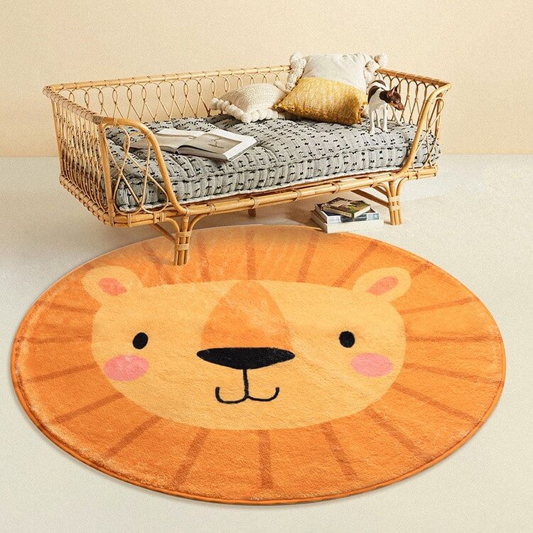 Tapis lion rond pour chambre d’enfant