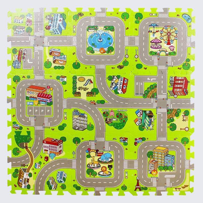 Découvrez le tapis puzzle en mousse circuit de voiture pour enfant, 9 pièces de puzzle en mousse se combinant harmonieusement pour former un circuit de voiture encourageant l’imagination et la créativité chez les plus jeunes.