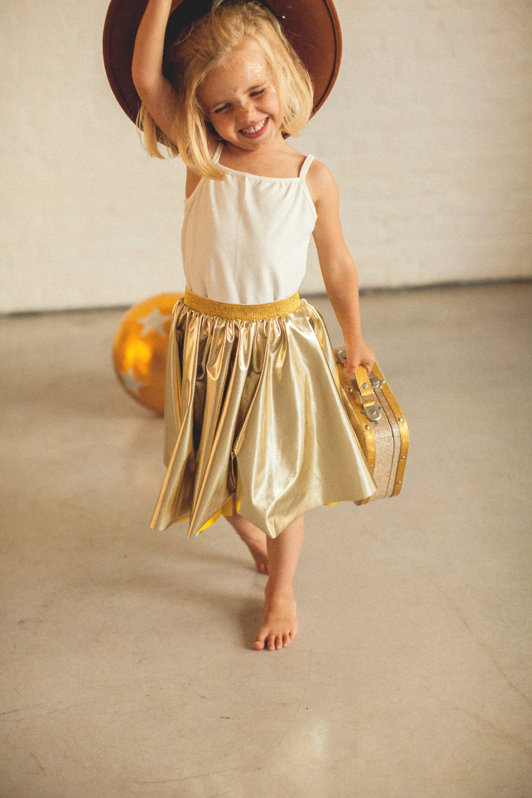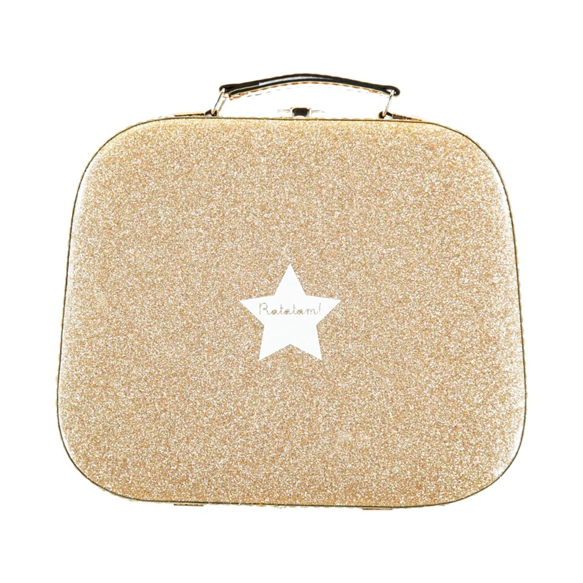 Découvrez notre magnifique valise à paillettes or, le parfait écrin pour les petits trésors de votre enfant !
