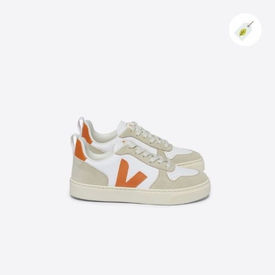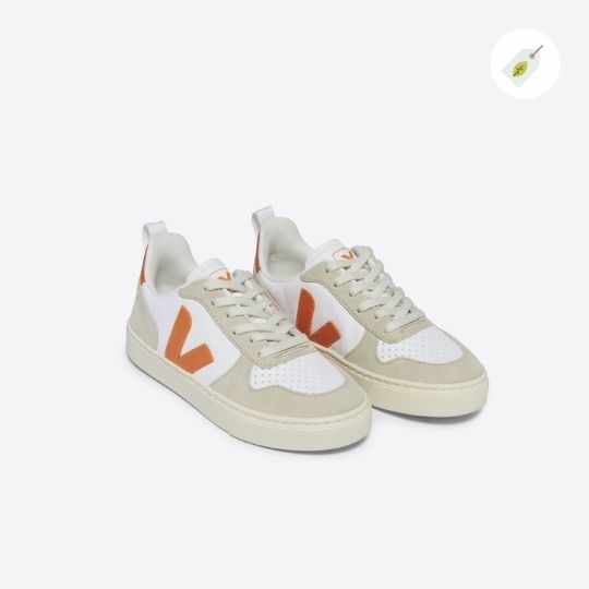 Découvrez les baskets V-10 LACES CHROMEFREE LEATHER WHITE FURY ALMOND de VEJA, des chaussures qui allient mode et responsabilité environnementale