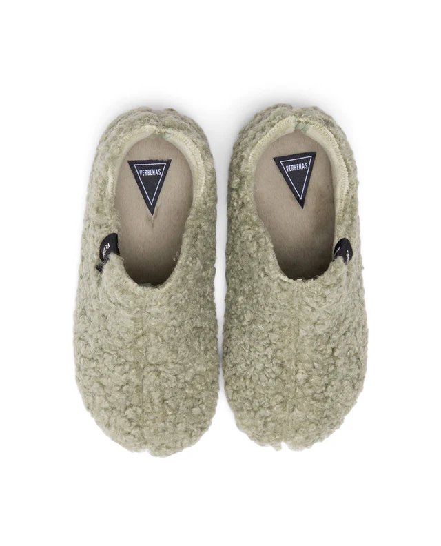 Chaussons Yoi curly couleur verte. Confectionnés avec une tige 100 % PES, une doublure et une semelle intérieure 100 % PES, et une semelle extérieure 100 % caoutchouc. Fabriqués en Espagne. Ce sont des chaussons-bottines conçus pour les journées les plus froides et les plus exigeantes. Leur silhouette enveloppante s’adapte comme une seconde peau, apportant une touche de confort supplémentaire. Elle se distingue par son extérieur en douce fourrure polaire et sa doublure en fourrure à l’intérieur. Son talon compensé discret est conçu pour offrir un plus grand confort et une légère élévation.