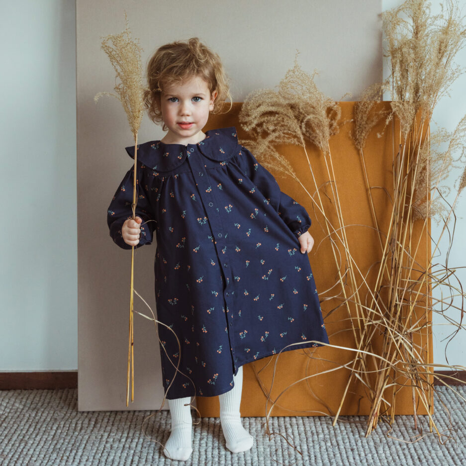 Découvrez notre nouvelle robe à manches longues de la collection Automne-Hiver 2024, alliant style et durabilité. Confectionnée en coton bio à 100%, cette robe douce et confortable séduit par son tissu charmant qui apporte une touche d’adorabilité. Les boutons-pression sans nickel garantissent une fermeture pratique et sécurisée.