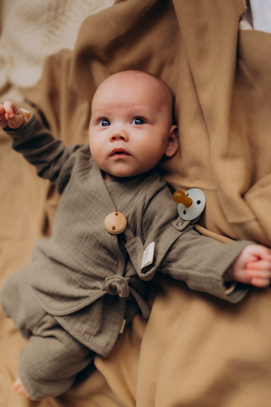 WOOLY ORGANIC – Veste enveloppante en mousseline – Tea Leaf
